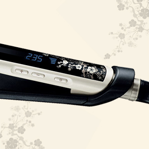 Die schlanken, extralangen (110 mm) und federbelasteten Stylingplatten sorgen für einen gleichmäßigen Druck auf das Haar, sowohl beim Locken als auch beim Glätten.